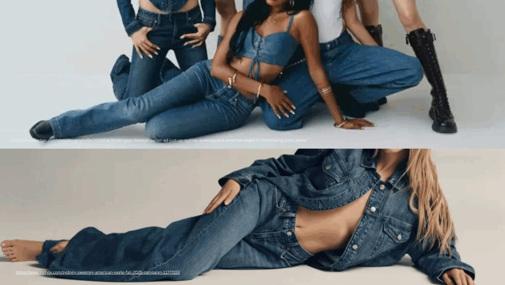 Meanwhile, Gap’s “Better in Denim” campaign has gone full Y2K. With global girl group Katseye front and center, the brand leans into low-rise “Long & Lean” jeans, styled with bold choreography to Kelis’s iconic “Milkshake.” It’s a visual love letter to early 2000s style, captured in Gap’s official release and behind-the-scenes with Teen Vogue.